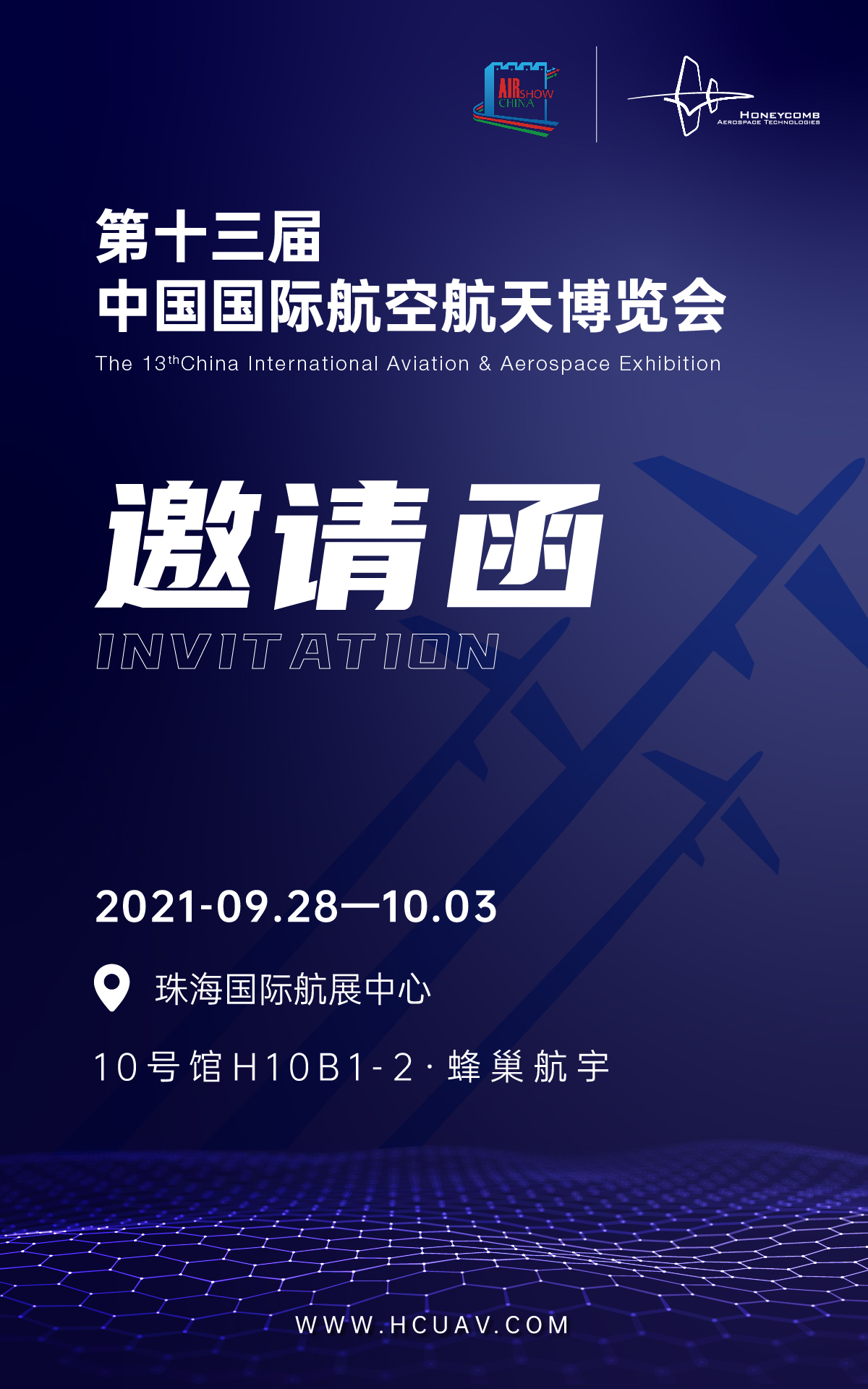 蜂巢航宇誠摯邀請您參加此次中國航展,我們在10號館H10B1-2恭候您的光臨!