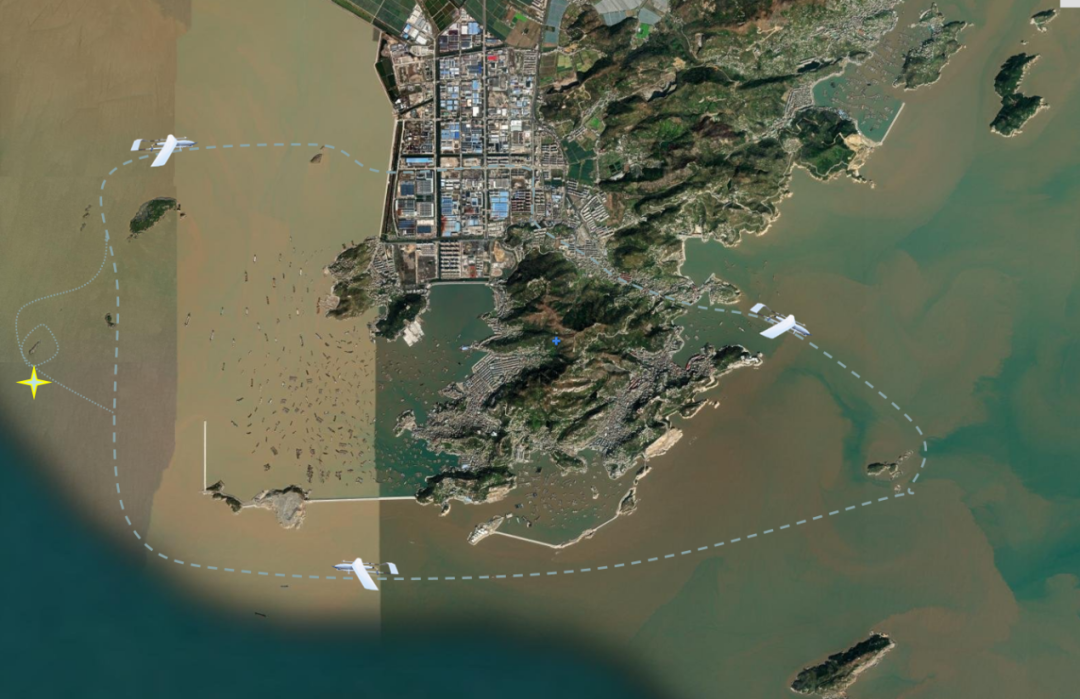 HC-525為SU-50智能自動無人機場專用無人機,不受起降場地的限制,巡檢時間長,為長距離帶狀應用場景提供最優解決方案。按照預定航線飛行,航線距離海岸線平均距離為3Km,航線總長度約25Km,飛行25分鐘。飛行過程中發現可疑船只,圖中十字星處無名島嶼。繞島盤旋,觀察,同時呼叫332H無人機平臺。