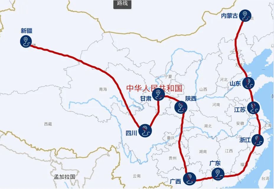 浙江——廣西——廣東——新疆——山東——陜西——甘肅——江蘇——內蒙古