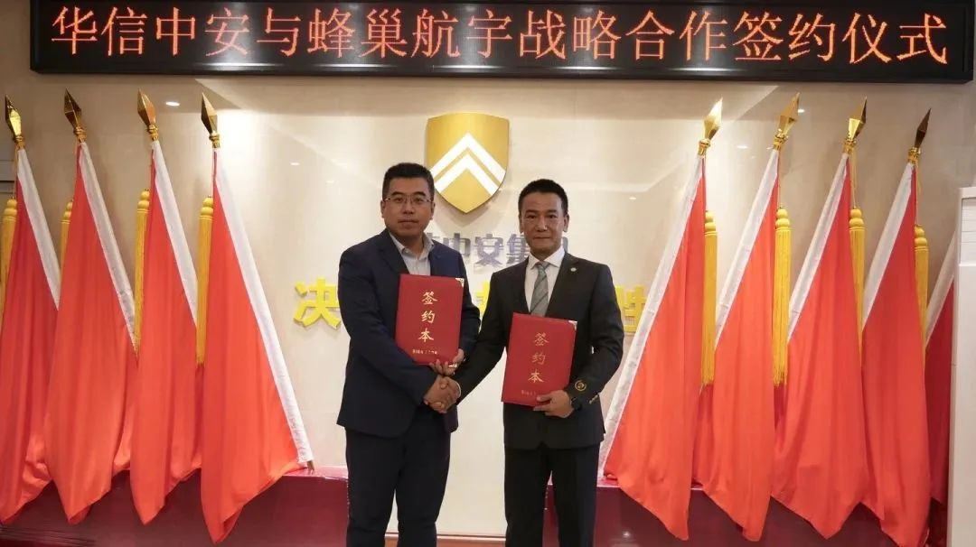 12月11日,蜂巢航宇與華信中安(北京)安保服務有限公司(以下簡稱“華信中安”)進行座談交流會議,并簽署了戰(zhàn)略合作協(xié)議。雙方本著優(yōu)勢互補、互利互惠、誠實守信、資源共享、共同發(fā)展的原則,將無人機領域的技術優(yōu)勢與安保領域的國內外資源優(yōu)勢深度結合,在產品研發(fā)、市場推廣、行業(yè)應用解決方案和相應的人員培訓等領域全面開展國內外合作。