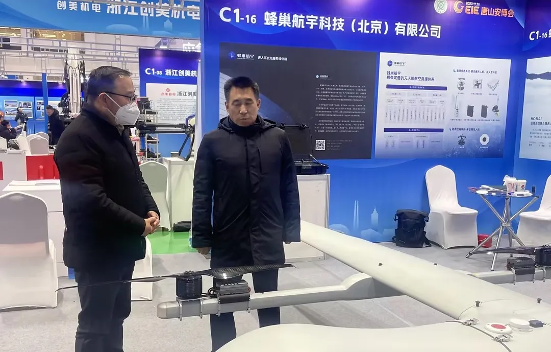 武衛東書記對蜂巢航宇深耕無人航空器領域,展示出的多項科研成果及應急行業的創新實力表示認可,并對HC-541應急通信復合翼無人機在北京抗洪應急救援應用成果予以肯定。唐山安博會是全市深入貫徹落實習總書記兩次視察唐山作出的“三個努力建成”“三個走在前列”重要指示的重要舉措,吸引國內外安全應急領域知名企業和科研機構,積極推動加速打造安全應急裝備產業的世界級先進制造業集群,進一步提升防災減災救災的產業支撐能力,高質量服務和保障人民生命財產安全。