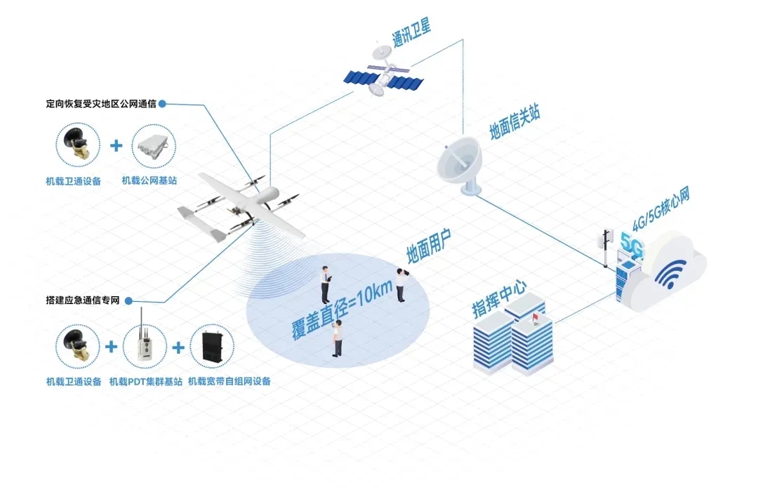 蜂巢航宇對大范圍復雜應急任務場景,在災害場景中構建無人機應急通信體系,可定向恢復受災地區公網通信,為災區用戶提供語音、短信和上網服務。搭建應急通信專網,為應急指揮部門實現指揮中心與一線搜救人員信息與指令實時互通需求,提高救援效率。