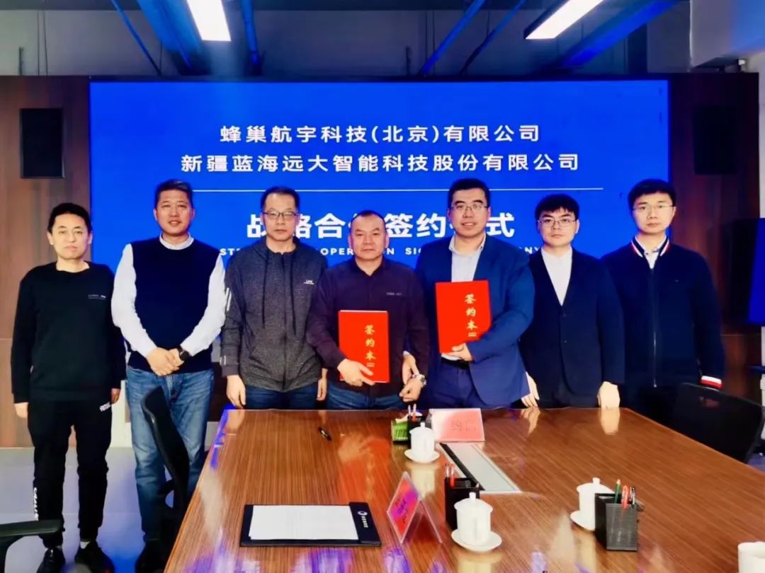 On January 12th, 2023, Honeycomb Aerospace Technologies (Beijing) Co., Ltd. held a discussion and exchange meeting with Xinjiang Blue Ocean Yuanda Intelligent Technology Co., Ltd. (hereinafter referred to as "Xinjiang Blue Ocean Yuanda") and signed a strategic cooperation agreement. The two sides will rely on their respective advantageous resources to build a solid strategic partnership, achieve technology docking and product integration, achieve overall win-win cooperation and common development, carry out in-depth industrial cooperation in areas such as domestic market integration, international trade, etc., and jointly develop the domestic and foreign UAV markets.
