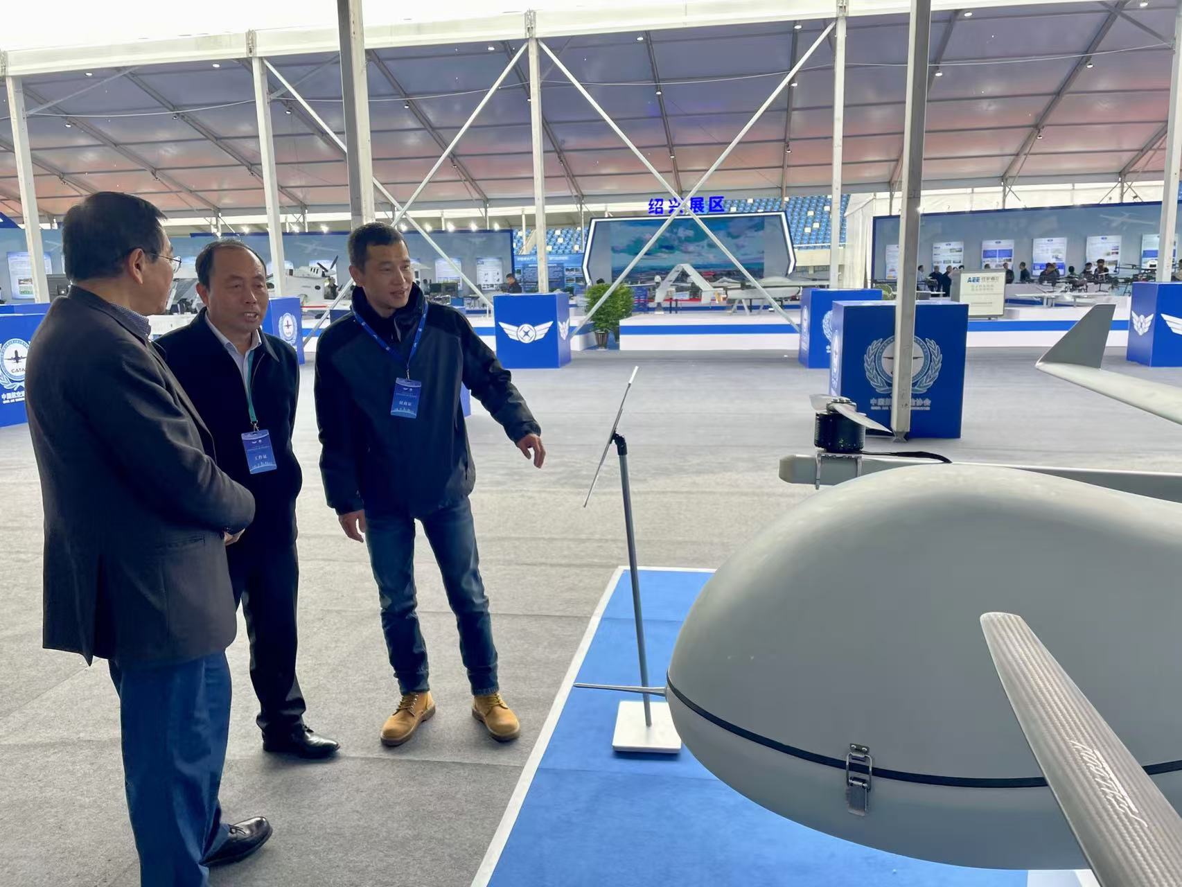 At the HC-541 display zone, leaders showed strong interest in this emergency communication drone featuring composite vertical takeoff and landing technology. The staff explained its carbon fiber and aramid honeycomb vacuum forming process, the technical advantages of a lightweight and high-strength design, and its core functions of carrying SATCOM on the move antennas and 4G/5G communication base stations in detail. The leaders recognized the UAV's six-hour endurance and ability to be flexibly deployed in complex environments, and paid special attention to its role in emergency communications support in natural disasters and emergencies.